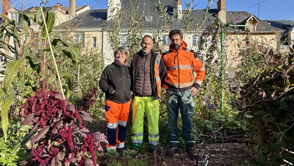 Rencontre avec Edwige, Yannick et Fabien, membres de l’équipe Espaces Verts du secteur intra-mails, en charge notamment du potager du Jardin de la Charpenterie.