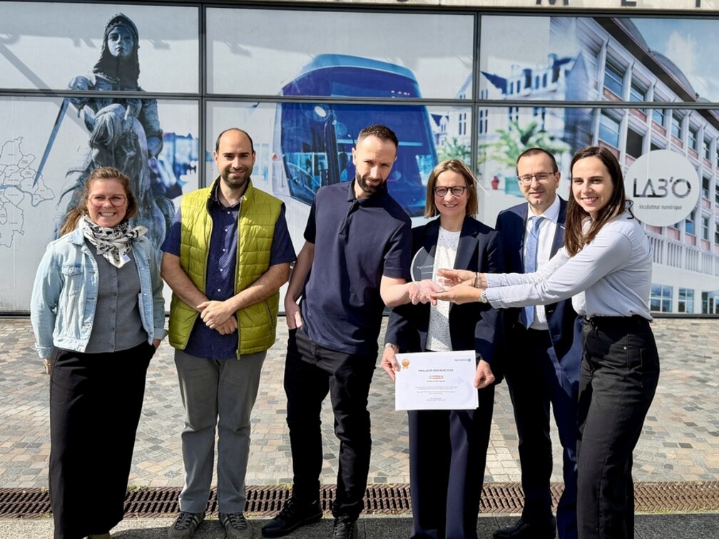 Mais au-delà des chiffres, la distinction vient saluer l’engagement d’Orléans Métropole pour sa politique en faveur de la lutte contre le gaspillage et du développement du réemploi. « Ce prix est avant tout une reconnaissance des efforts de nos collectivités et, plus particulièrement, des agents sur le terrain. Ils sont engagés dans une démarche vertueuse visant à entretenir et prolonger la durée de vie des équipements et, en bout de course, à leur offrir une seconde vie grâce à Agorastore, plutôt que de les stocker ou de les jeter », résume, très satisfait, le nouveau vice-président en charge des finances, Thibault Closset (2ème en partant de la droite sur la photo).